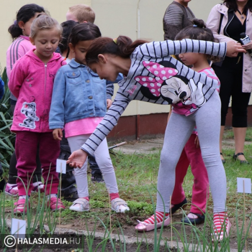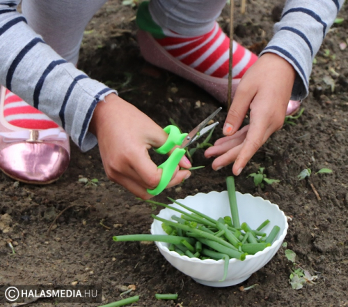 Kis tálkákkal, ollókkal érkeztek a gyerekek az ovis kertekhez, mivel elérkezett a betakarítás ideje. A halasi óvodákban pár héttel ezelőtt adták át az ovis kerteket. Először hagymát neveltek a nagycsoportos óvodások, most pedig már a betakarításon a sor. A gyerekek minden oviban naponta figyelték, hogyan cseperednek a növényeik, sőt többek már otthon is elkezdtek kertészkedni. Az Átlós úti intézményben is lelkesen gondozták a kertet a kislányok és kisfiúk.