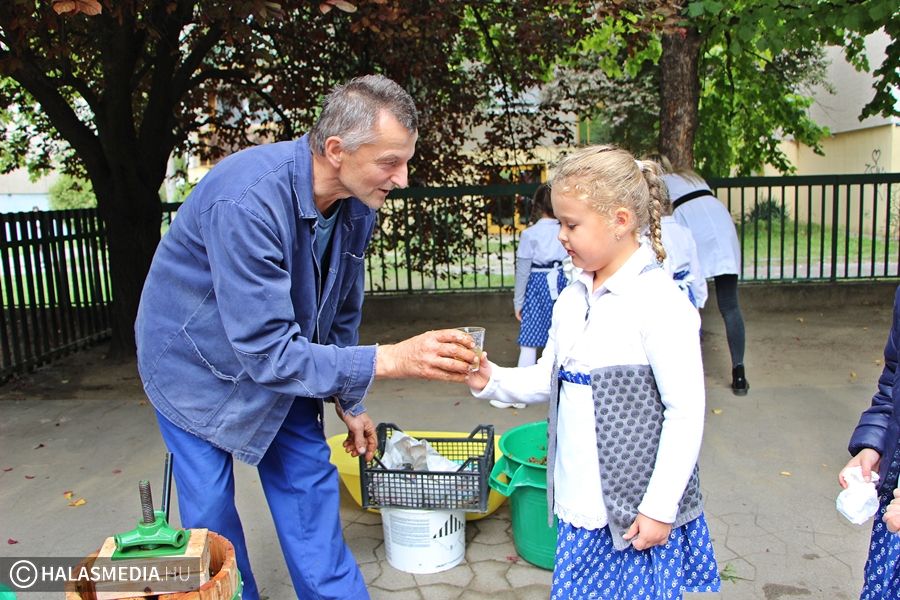 - Pár napja már volt egy közös programunk, akkor kimentünk a gyerekekkel szüretelni, együtt választottuk ki azokat a szőlőfürtöket, amikből most mustot csináltunk. Úgy láttam, nagyon érdeklődők voltak, szerették volna látni, hogyan lesz must a szőlőből, amit aztán gyorsan meg is ittak. Hasznosak az ilyen délelőttök, mert a kicsik olyan dolgokkal is találkozhatnak, amit amúgy talán soha nem látnának otthon – fejtette ki Vígh Lajos.