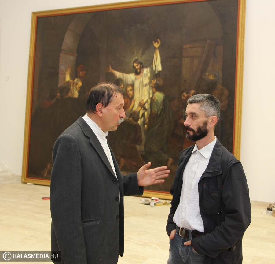 A Nemzeti Galéria és a Szépművészeti Múzeum szakemberekből álló csapata már szerdán Halasra érkezett és azon dolgoznak, hogy minden a legnagyobb rendben történjen, hiszen a nagyméretű képek elhelyezéséhez komoly előkészületek, precíz munka kell, volt, hogy még az éjszakát is a múzeumban töltötték, hiszen szorít a határidő. Gippert Lászlónak, a Magyar Nemzeti Galéria restaurátori főosztályvezetőjének irányításával újraaranyozták és patinázták az egyik monumentális Thorma kép, a Talpra magyar! keretét is.