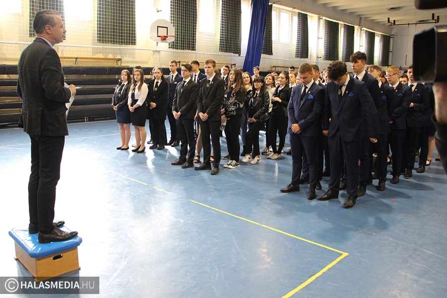 Izgalommal érkeztek a végzős diákok ma reggel a halasi középiskolákba. Stábunk a II. Rákóczi Ferenc Katolikus Gimnázium és Technikum érettségizőit kereste fel. Számukra Téglás László igazgató tartott egy rövid tájékoztatót az iskola sportcsarnokában.