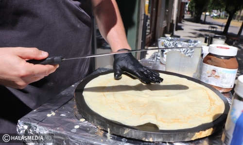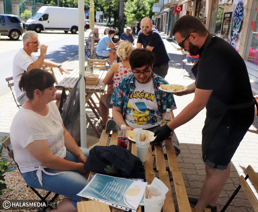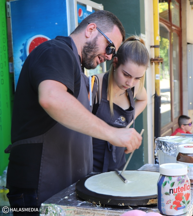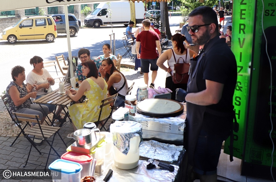 Vasárnap nagyüzem volt a Szilády-gimnázium mögött. A máskor csendesebb utca ezúttal a színesebb oldalát mutatta. A PalacsintaPont csapatának valamennyi tagja szorgoskodott, hogy mindenki időben megkapja a finomságokat. Délután pedig Gáspár Imre és családja vendégeskedett a rendezvényen. Imi örömmel újságolta, hogy a napokban előrehozott emelt angol érettségit tett, mégpedig az előzetes jelzések alapján remek eredménnyel. Megtudtuk azt is tőle, hogy a minden szempontból megfelelő protézist hamarosan megkapja, a szükséges rehabilitáció miatt nem kell elutaznia, azt helyben is meg tudják oldani. A fiatalember rengeteget mosolygott, mint mondja: ez is erőt ad neki.