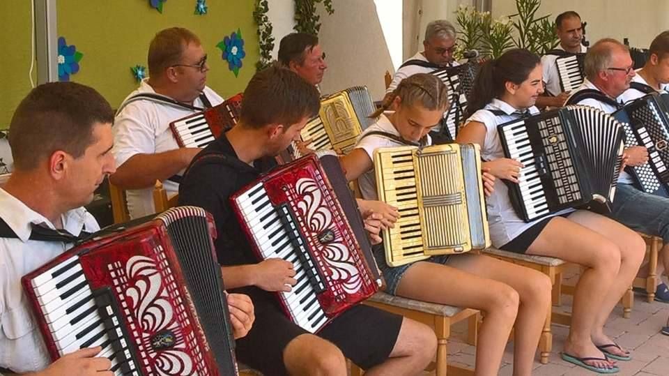 A harmonikásokkal már a szombati – 13 órakor induló – szüreti felvonuláson is lehet találkozni. Feldíszített járművükkel ott lesznek a menetben és végigmuzsikálják a Kossuth utcát. A szombat délután folyamán a városháza díszudvarában berendezett borudvarban is lehet találkozni a harmonikásokkal. 16 órakor kezdődik a műsoruk. A csapat érdekessége, hogy többgenerációs zenekar, fiatal és tapasztaltabb zenészek is játszanak benne. A csoport elsősorban a minőségi zenekultúra és a minőségi élőzene továbbélésén dolgozik.