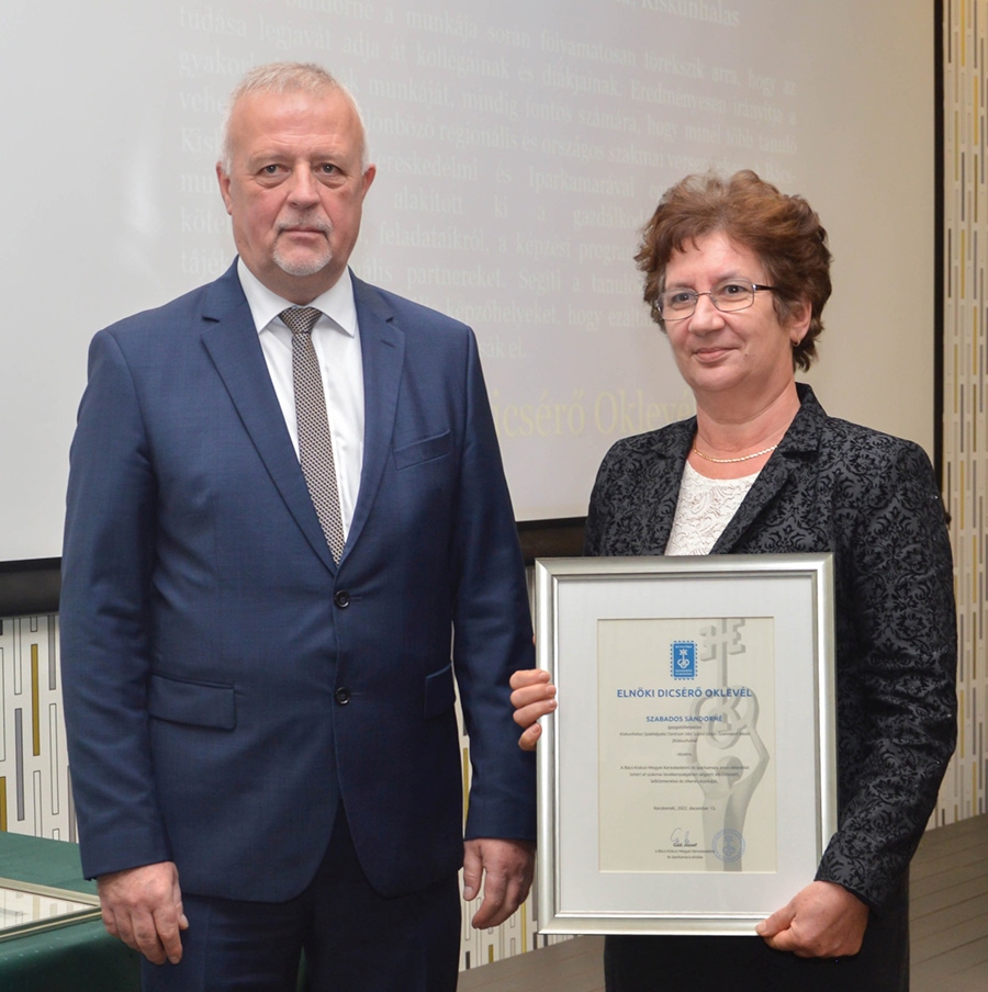 A Bács-Kiskun Megyei Kereskedelmi és Iparkamara vezetése ebben az évben is átadta a kitüntető díjakat az arra érdemes vállalkozásoknak a decemberi küldöttgyűlés ünnepi órájában. Az ünnepélyes díjátadóra ma délelőtt került sor. Kiskunhalas három kitüntetettel szerepelt az elismerések átvételénél. Díjat vettek át mások mellett Gál István, Molnár Nándor és Szabados Sándorné.