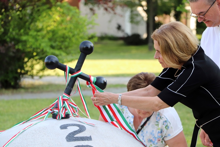 Az ünnepségen koszorúkat, virágokat helyeztek el a megemlékezők a határkőnél.