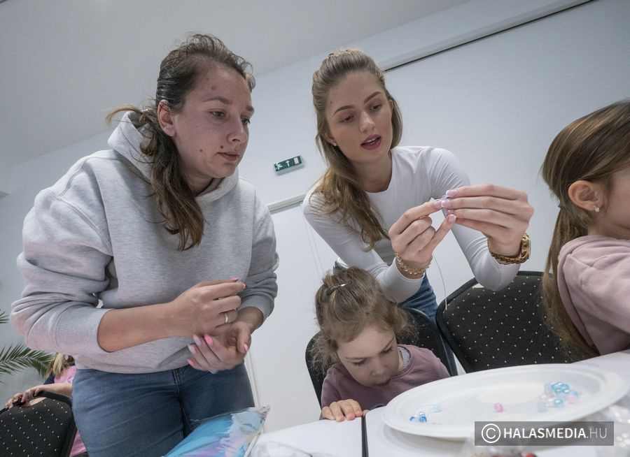 A kézműveskedést és a lovas élet alapjait próbáltuk egybegyúrni úgy, hogy az egész napjukat kitöltsék az érdeklődő lánykáknak – mondta Rózsahegyi Róbert, a Kiskunhalasi Lovasbandérium Egyesület elnöke. A Kincsem Ház nagy terme ideális a kézműves foglalkozásokra, bármilyen időjárás is legyen odakint. Önkéntes segítőink egyedi ásványékszerek készítését kínálták a jelentkezőknek, amit csodás hajkoronával egészíthettek ki a gyerekek. Mindezt maguk készítették el, természetesen szakértő segítséggel.