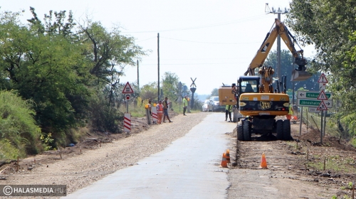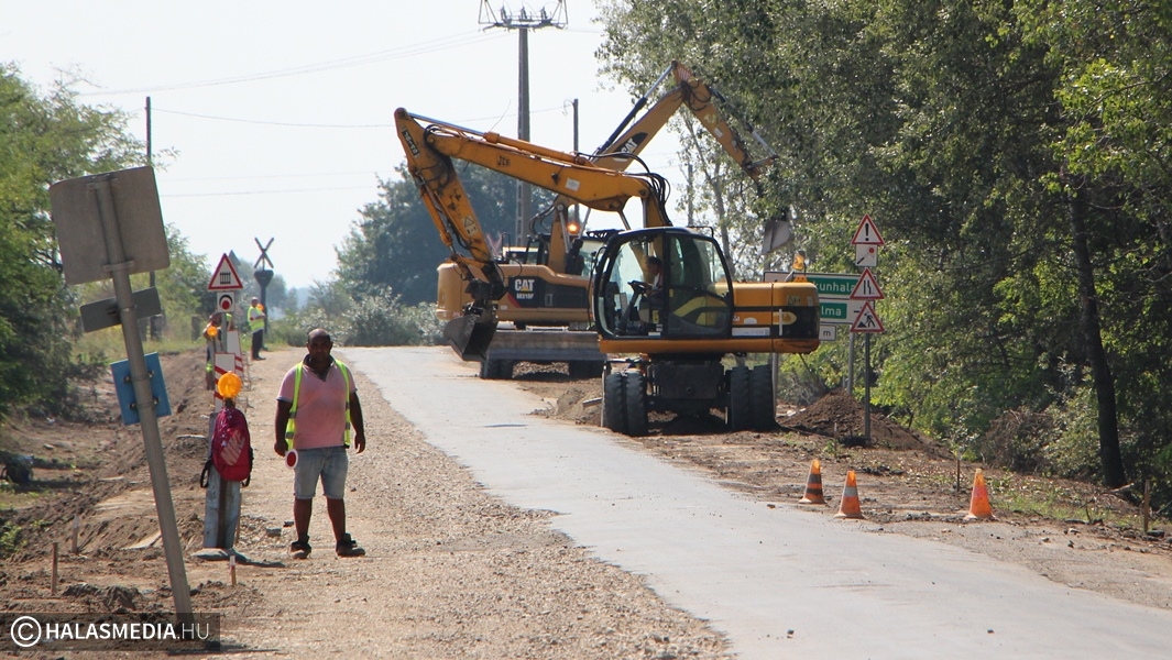 Európai Uniós forrásból 252,79 millió forint vissza nem térítendő támogatást nyert Kiskunhalas a Kopolyai út külterületi, 900 méteres szakaszának felújítására. A projekt a Széchenyi 2020 program keretében valósul meg, a kivitelező Soltút Kft. augusztus elején kezdte a munkálatokat. Azóta a kellő ütemben haladnak a brigádok úgy, hogy közben félpályán lehet használni az utat, amelyen egy nap alatt több ezer jármű halad át. Az már látható, hogy kitisztították a vízelvezető árkokat, valamint a két szélen felszedték a töredezett aszfaltot. Volt olyan rész, ahol nem volt mit felmarni, merthogy elkopott az elmúlt évtizedek alatt. A leendő út alapját már letették a kivitelezők.