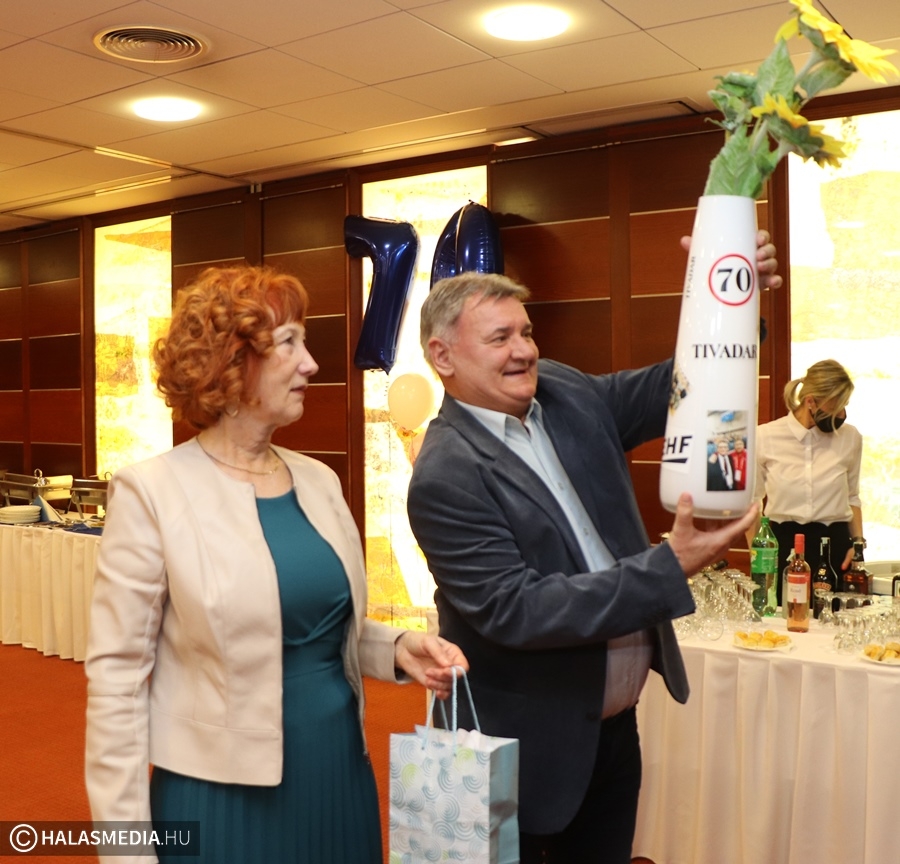 Eljöttek a barátok és a kézilabdás kollégák is. A halasi játékvezetői közösség tagjai egy labdával, fényképekkel, személyes üzenetekkel köszöntötték az ünnepeltet. A Magyar Kézilabda Szövetség egy 70-es mezzel fejezte ki elismerését Lekrinszki Tivadarnak. A születésnapos mindenkinek megköszönte a részvételt, családtagjait külön is kiszólította. Édesapja, dr. Lekrinszki Ferenc, testvévei, Edit és Zoltán, fia, Norbert, valamint unokái Edvárd és Dóra is ott volt a jeles alkalmon. A barátok egy dallal köszöntötték fel az ünnepeltet. Boldog születésnapot, Tivadar!