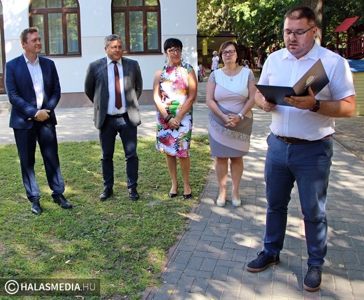 A hivatalos átadóra kedden délelőtt került sor. Bányai Gábor kormánybiztos, országgyűlési képviselő mellett Fülöp Róbert polgármester; Szeriné Ferencsik Yvette, a Kiskunhalasi Bóbita Óvoda és Bölcsőde intézményvezetője mellett Ácsné Fehér Klára nyugalmazott intézményvezető is megtisztelte jelenlétével az eseményt. A vendégeket Kuris István László alpolgármester köszöntötte. Az ünnepség során kiderült, hogy Fülöp Róbertnek személyes kötődése is van a helyszínhez, valamikor egy évet töltött el gyermekként az óvoda falai között. Elhangzott, hogy az elmúlt években az összes önkormányzati óvodát sikerült korszerűsíteni, felújítani. A rekonstrukció része annak a pályázatnak, amelynek során a Szabó Ervin utcai szociális bérlakások, valamint a régi városháza épületén is hasonló munkálatok zajlanak majd.