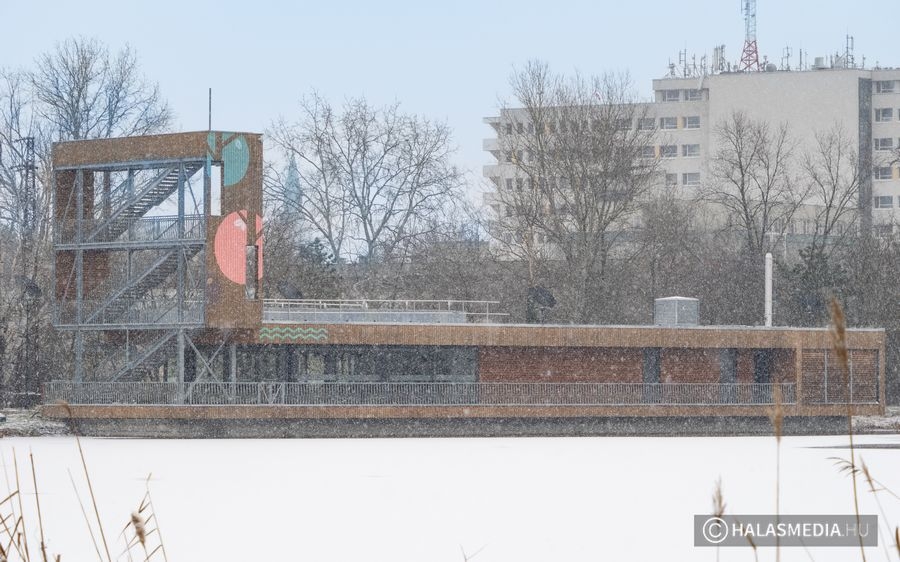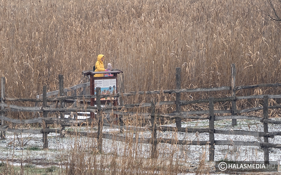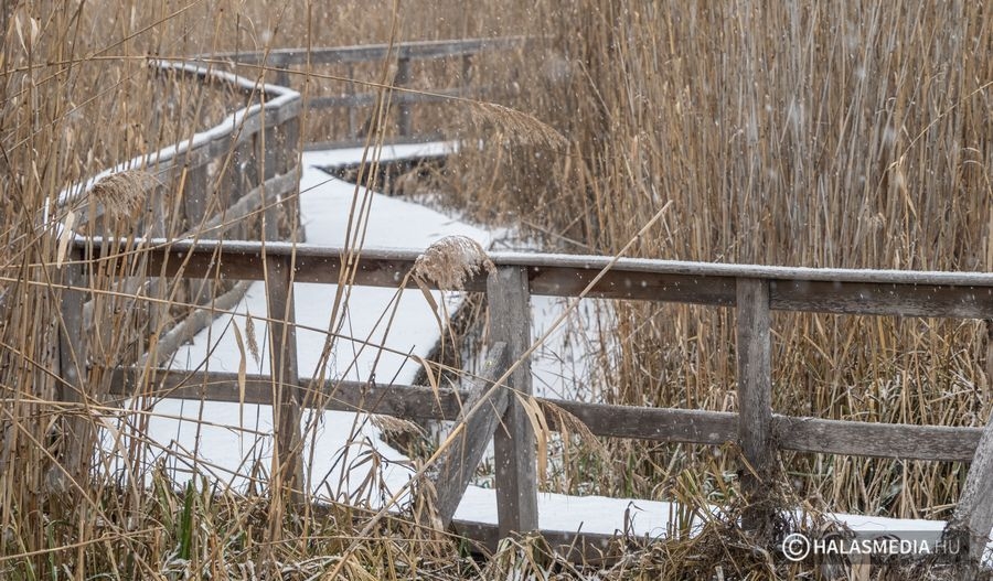 Sorban ugyan nem álltak a park bejáratánál, de voltak, akik kihasználták az utóbbi években visszafogott téli csapadék okozta látványt és tettek egy kört a halasi ökopark területén. Érdemes volt, mert valóban különleges arcát mutatta a finom hóréteggel befedett nádas, ösvényes, fagyos mocsaras terület. A tó egy részén jég borította felületét, itt-ott kráterpöttyök különleges formavilágát vetítve a hatalmas, hófehér vetítővászonra.