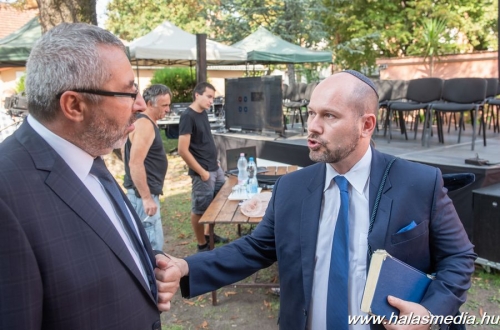 Vasárnap délelőtt 11 órakor a Keresztény-Zsidó párbeszéddel indultak a XVIII. Kiskunhalasi Zsidó Fesztivál programjai. Ám mielőtt elkezdődött volna a párbeszéd program, Prof.Dr. Róna Tamás főrabbi felállásra szólította fel a megjelent közönséget. Kérte, hogy forduljon mindenki a zsinagóga felé és felállva emlékeztek meg a közelmúltban elhunyt, korábbi hitközség elnökről, Raáb Andrásról.