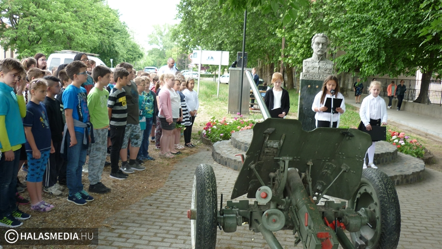 Gábor Áron rézágyúja fel van virágozva – így szól az ének, amit most szó szerint vettek. A halasi honvédelem napi megemlékezésen a Felsővárosi Általános iskola 3. és 4. osztályos diákjainak műsorában az 1848-49-es események felidézésekor még a Szabadság téri emlékmű páncéltörő lövege is szerepet kapott, Gábor Áron ágyúját helyettesítette.
