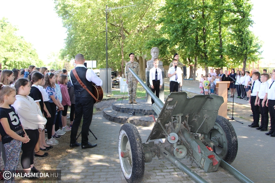 A Magyar honvédelem napja alkalmából tartottak ünnepséget Kiskunhalason a Gábor Áron emlékműnél. Mint ahogy az sok éves hagyomány, most is a Felsővárosi Általános Iskola diákjai készültek verses, zenés műsorral.