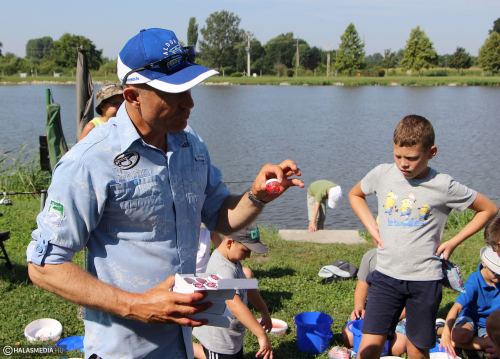 - Ha tehetném, mindig gyermekek között lennék. Hálás hallgatóság, és nagyon fogékonyak - mondta a kiváló horgász, Döme Gábor csütörtökön délelőtt az Ezüst-tó partján. A Sóstó SHE idén is megrendezi hagyományos táborát, ezúttal közel húsz fiatal ismekedik meg az alapokkal. Ebben nagy segítségükre van Döme Gábor, aki az ő nyelvükre lefordítva osztja meg a hasznos tudnivalókat. A résztvevők megtanulják a horog- és etetőszerelés alapjait, az etetőanyag helyes keverési arányát is, miközben szakavatott segítséget kapnak a kiváló horgásztól. A Haldorádó pedig a szükséges eszközöket biztosította.