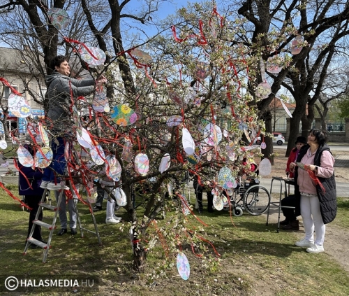 A Halasi Városgazda Zrt. munkatársai, Pintérné Fischer Éva vezetésével igen kreatívak. Erre bizonyíték a Zenepavilon húsvéti díszbe öltöztetése is. A saját ötletek, kivitelezések eredményeképpen hétfő délutántól már megújult külsővel fogadja az ünnepre készülő halasiakat a főtéri létesítmény. Közben elkezdődött a hagyományos tojásfa szépségverseny is.
