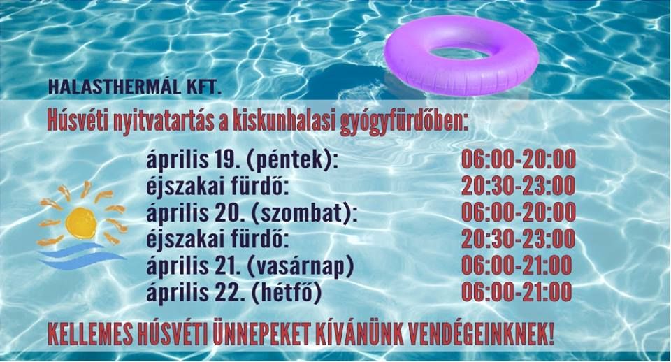 Április 19. (péntek) és április 22. (hétfő) között is változatlanul várja az úszni, kikapcsolódni vágyókat a halasi strand. A lenti képen látható, hogy melyik nap, milyen nyitvatartással üzemel a létesítmény.