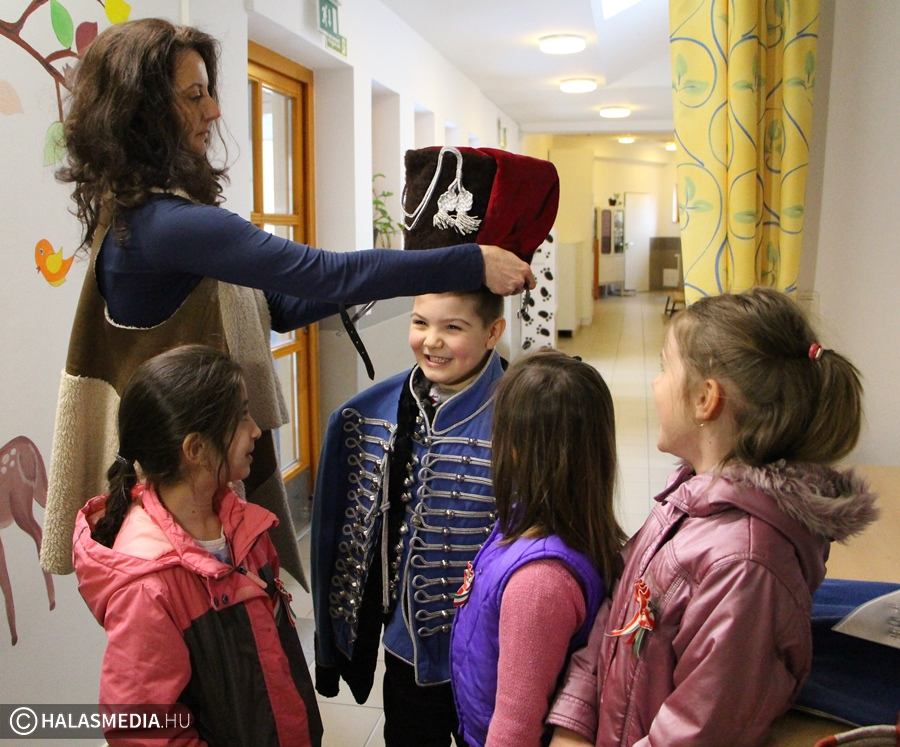 Az 1848/49-es forradalom és szabadságharc 170. évfordulójára készült a Gólyafészek Óvoda is. Mivel a gyerekek szülei, nagyszülei közül többen kötődnek a Kiskunhalasi Lovasbandériumhoz, ezért megszerveztek egy különleges programot. A napokban a huszárok ruházatával ismerkedtek meg a kicsik egy foglalkozás keretében, szerdán pedig Táltos nyergében Ács Attila huszár hadnagy vendégeskedett az óvodában. A kislányok és kisfiúk az óvónők társaságában várták a különleges vendéget az udvaron, volt, aki felpróbálta az egyenruhát és a kalpagot is.