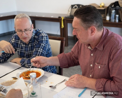 Apropó zsűri. A bírálók között olyan ismert személyek ítélkeztek az ételekről, akik a gasztronómiai szakma elismert képviselői. Vomberg Frigyes és Segal Viktor Horváth Kriszta versenytitkárral körbejártak a csaptok standjainál. Minden apró részletre figyeltek. Jegyzeteltek, beszélgettek, kérdéseket tettek fel a hozzávalókról, a főzetek elkészítésnek módjáról. Mindez persze csak előzetes felmérést jelentett, mert a végső sorrend kialakításában természetesen az ételek minősége döntött.