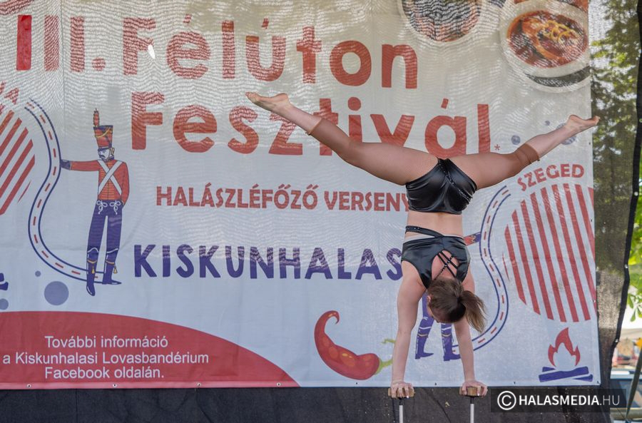 Már a III. Félúton Fesztiválnak örülhettek szombaton a halasiak és persze a máshonnan városunkba érkezők. Az egésznapos főzőversenyre épülő szabadidős program igazi vásári, mutatványos feelinget varázsolt a lovasparkba. A pálya zöld gyepén játszóházak, körhinta, dobálóvár és hatalmas színpad várt a közönségre vendéglátóhelyekkel. A kirakodókból, árusokból jutott a pálya körüli sétányokra is.