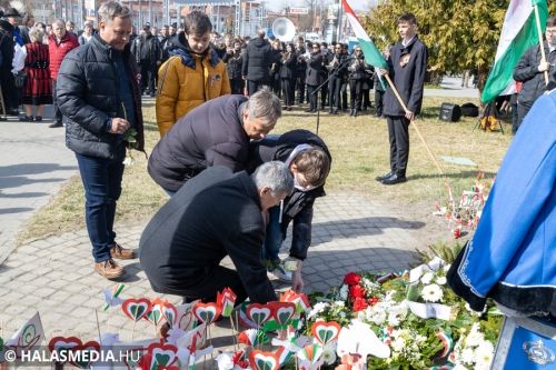 Több helyszínen zajlott március 15-én a halasi városi ünnepség. Zászlófelvonás, ünnepi szónoklat, diákok műsora és koszorúzás követték egymást. Sokan vettek részt a nemzeti ünnep városi eseményein.