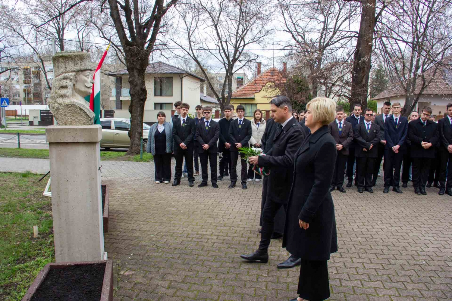 Március 27-hez, II. Rákóczi Ferenc emléknapjához csatlakozott és ünnepséget szervezett névadójáról a kiskunhalasi középiskola. A II. Rákóczi Ferenc Katolikus Gimnázium és Technikum diákjai, tanárai főhajtással és műsorral tisztelegtek a fejedelem emléke előtt. A csütörtök délelőtti program helyszíne az intézmény előtti tér volt, ahol a Rákóczi-szobor áll.
