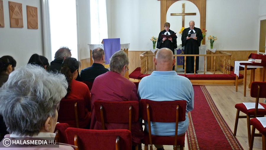 A halasi evangélikusoknál már kilenc éve nem volt példa kétnyelvű istentiszteletre, míg korábban negyedévente tartottak ilyet a térségben élő 50-60 fős német közösségnek – mesélte Káposzta Lajos nyugalmazott evangélikus esperes-lelkész. – Nemrég egy temetés kapcsán az özvegy kérdezett rá, hogy miért nincs német nyelvű istentisztelet, én mondtam neki, hogy virágvasárnap tartunk és így is lett – fűzi hozzá. Az istentiszteleten Káposzta Lajos nyugalmazott esperes-lelkész és Honti Irén lelkész felváltva németül és magyarul szóltak a közösséghez és az énekek is két nyelven szóltak a Szilády Áron utcai imaházban.