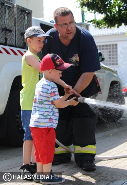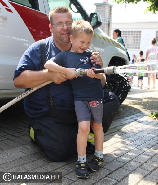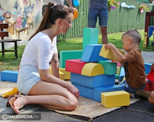 Teljesen megtelt a Városi Bölcsőde udvara, sőt az épület előtt lévő utcát is lezárták a forgalom elől. Nem véletlenül, az intézmény legfontosabb programja, a családi nap, valamint a ballagás zajlott pénteken délelőtt. Ezen a napon a gyermekek szüleikkel, nagyszüleikkel, testvéreikkel játszhattak, mókázhattak. Ki lehetett próbálni a rendőrség, a tűzoltóság eszközeit, voltak elektromos kisautók, de felállítottak egy ugrálóvárat is. Szálltak a lufik és a buborékok is a levegőben.