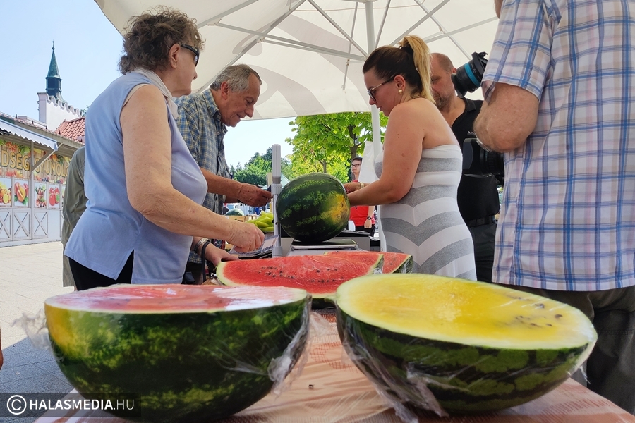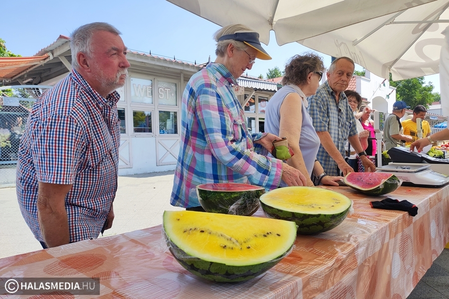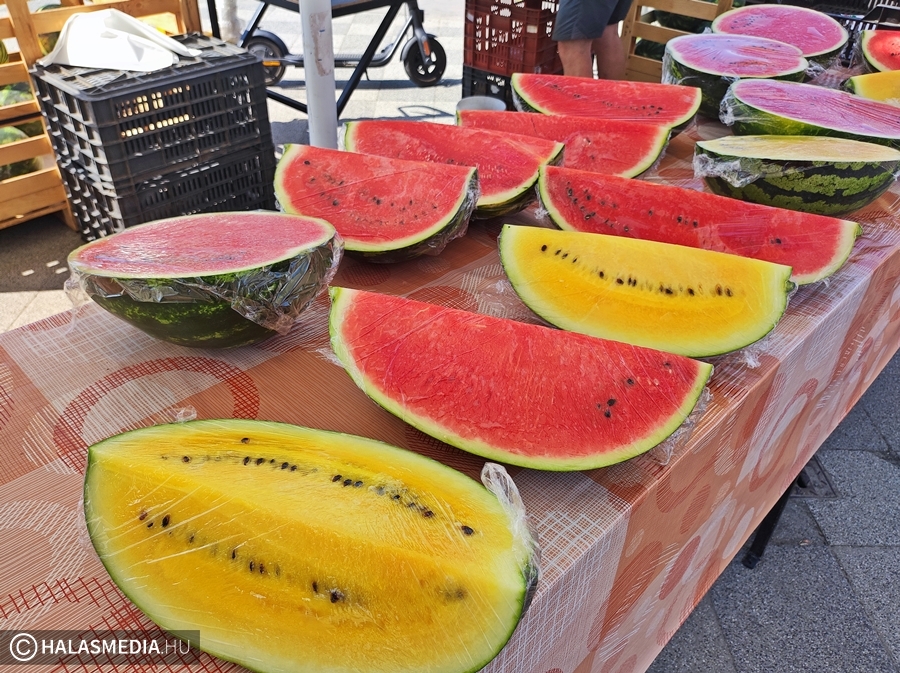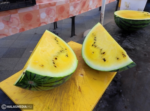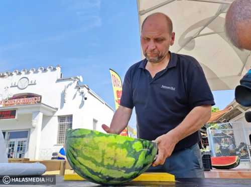 - Ne legyen túl nagy. Az íze édes, a belseje szép piros. Az jó, ha az árusnál meg lehet előre kóstolni, hisz akkor biztosan finom dinnyét visz haza az ember – mondta az egyik hölgy, a halasi piacon.