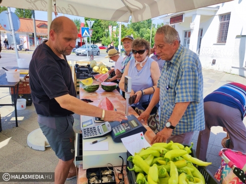 - A megszokottól hamarabb jöttek idén a magyar dinnyék. A kínálat nagyon széles, hisz van magnélküli, sárga- és piroshúsú dinnyék, ás persze a sárgadinnye is megjelent a portékák között. Azt tapasztaljuk, hogy inkább többször, kisebb mennyiséget vesznek az emberek. Egész dinnyét kevesen visznek, inkább a fél vagy negyed a kelendő – fejtette ki Tóth Zoltán vállalkozó.