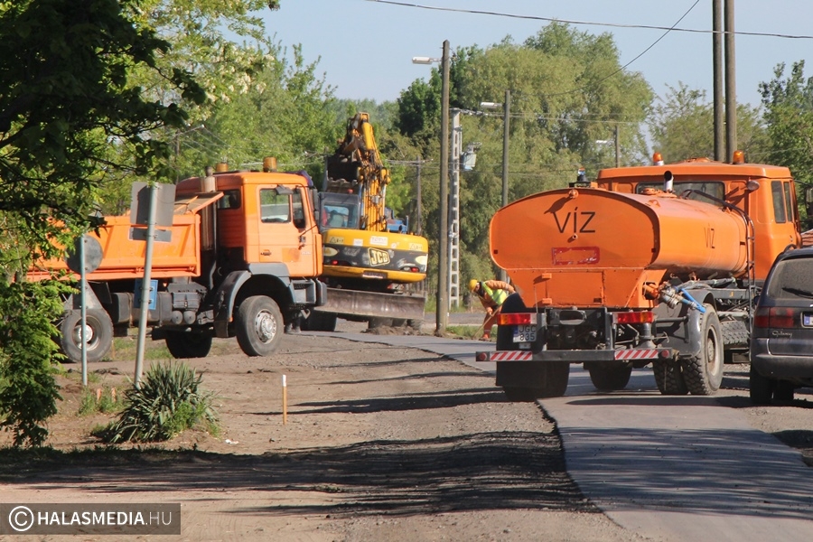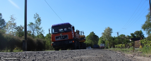További egy kilométere újul meg az egyik legforgalmasabb halasi gyűjtőút. Tavaly ősszel 900 méteres hosszúságban készült el a Kopolyai út külterületi része, a mostani renoválás ennek végétől a Tinódi utcai kereszteződésig tart. Jól haladnak a munkálatok, ezekben a napokban a régi burkolat eltávolítása van folyamatban, a forgalmatjelzőőrök irányítják.