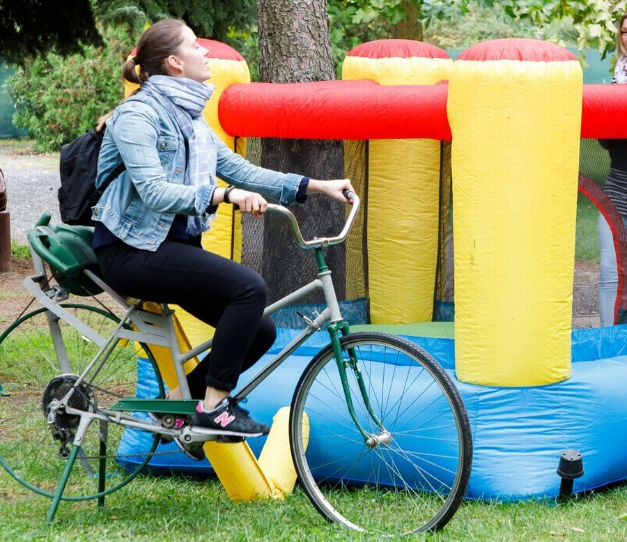 A Kezes-lábas játszóház pedig igazán különleges szerkentyűket hoz: nem mindennapi kivitelezésű ugrálóvár, tennis bike, labirintus, lebeGolyó, céllövölde bringával és tűzszerész bringa is lesz! A Biró Szabolcs által alapított játszóház csapata többek között roncstelepekről megmentett kerékpárokból és más újrahasznosított hajtányokból készíti a programokhoz szükséges eszközöket. Szerkezeteikben a kreativitás és a környezettudatosság találkozik a jókedv és az összefogás erejével. A mozgással működésbe hozható eszközök mindegyike szórakoztató elfoglaltságot nyújt, miközben gyermekek és felnőttek számára is megmutatja a fenntarthatóság és a környezetvédelem fontosságát és értékét.
