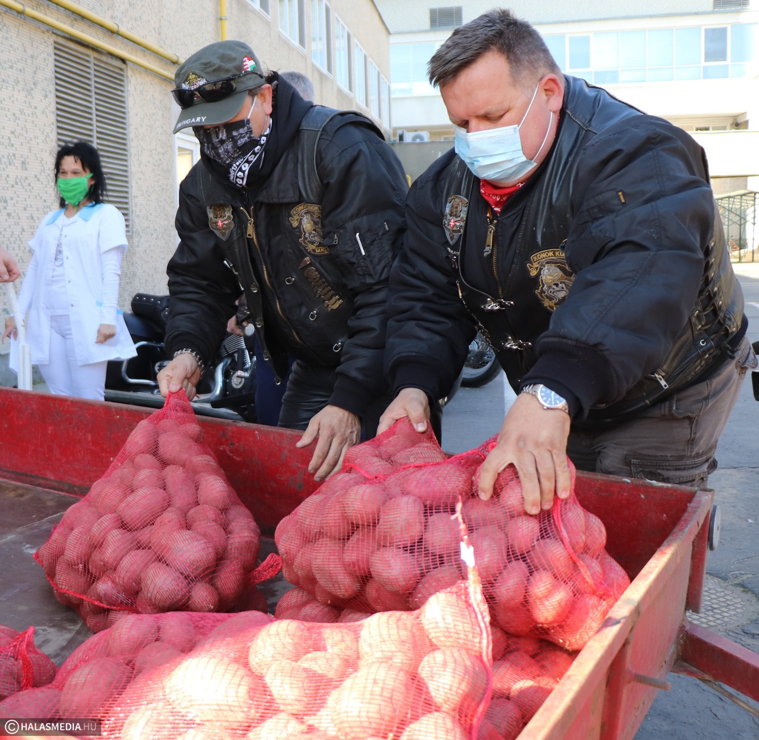 Egy utánfutónyi burgonyával és sárgarépával lepte meg a Kiskunhalasi Semmelweis Kórház SZTE Oktatókórházát a Konok Kunok Motoros Klub. Hanzik Béla ötlete volt, hogy ilyen módon segítsék azokat, akik az elmúlt hetekben óriási terhelésnek vannak kitéve és áldozatos munkát végeznek. Az átadó végén, amolyan bónuszként az élelmezés dolgozói is motorra pattantak és tettek egy kört a kórház területén.