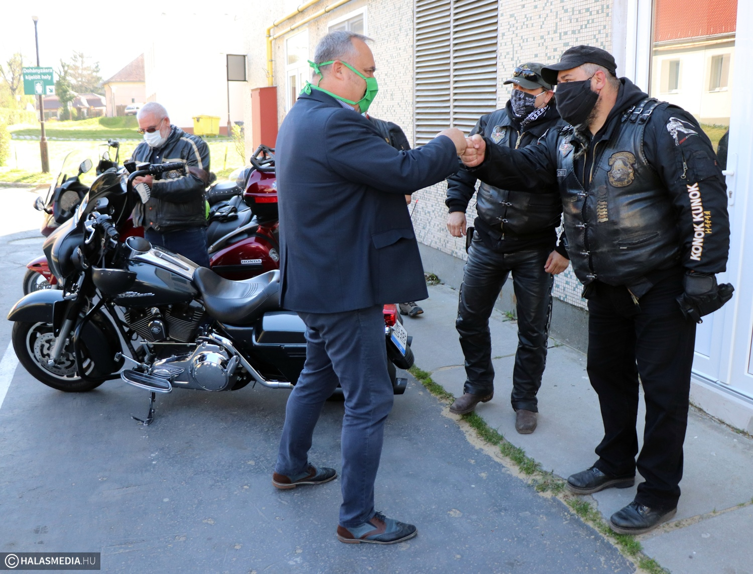 Motorosok gördültek be kedden délelőtt a Kiskunhalasi Semmelweis Kórház SZTE OKtatókórházának gazdasági bejáratán. Egy utánfutót kísért Gál Dezső és csapata, adományt hoztak az intézmény részére. A Konok Kunokat dr. Szepesvári Szabolcs főigazgató fogadta és ő mondott köszönetet a felajánlásért. A klub már hetedik éve végez karitatív tevékenységet, rendszeresen segíti a gyermekosztályt. Ezúttal az egész kórháznak hoztak zödségeket.