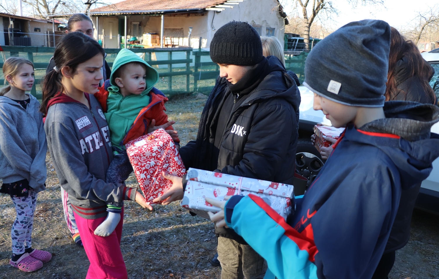 Hegedűs Piroskának négy gyermeke van, Cintia, Kitti, Roland és Viktor édesanyjukkal fogadtak bennünket. Ott a sziládys diákok adták át az ajándékaikat, amelyet szeretettel fogadtak. Megtudtuk, a gyermekek a Kertvárosi-iskolában tanulnak, hétköznap kollégiumban laknak. Piroska szerint ez tanulás szempontjából nagyon előnyös, ráadásul az otthont az iskolától kilométerek választják el. Ezen a helyen is sikerült mosoly varázsolni az arcokra és biztosak lehetünk benne, jó helyre került az adomány.