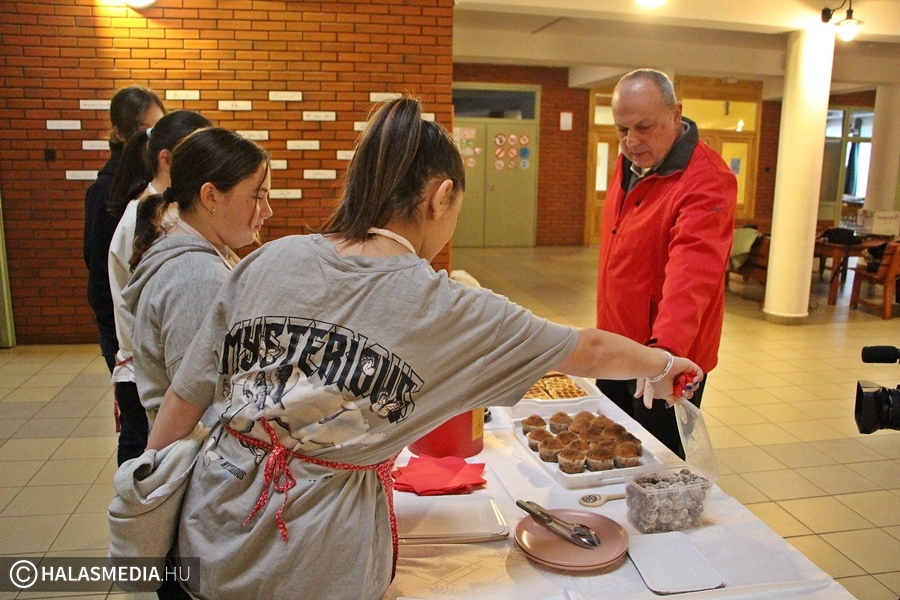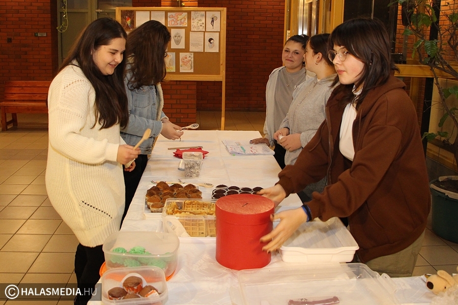 - Évek óta szerveződik a gimnáziumban ilyen jótékonysági nap. Mi most különféle süteményekkel, édességekkel készültünk, az ebből befolyó összeget, pedig teljes egészében felajánlottuk a Kiskunhalasi Állatmentő Alapítvány javára – számolt be weblapunknak Németh Buhin Beatrix szervező diák.