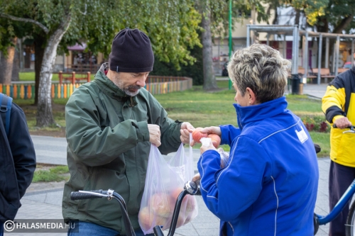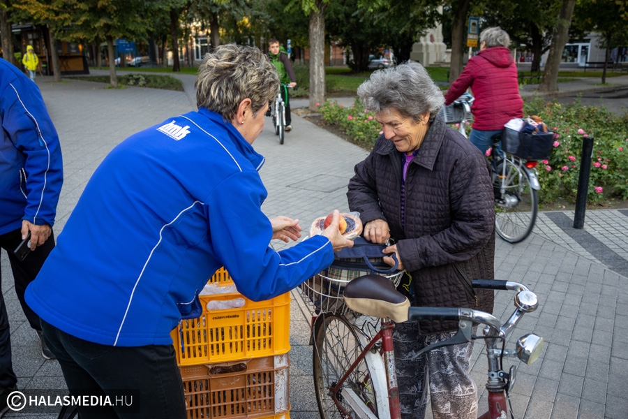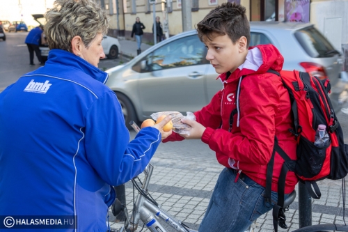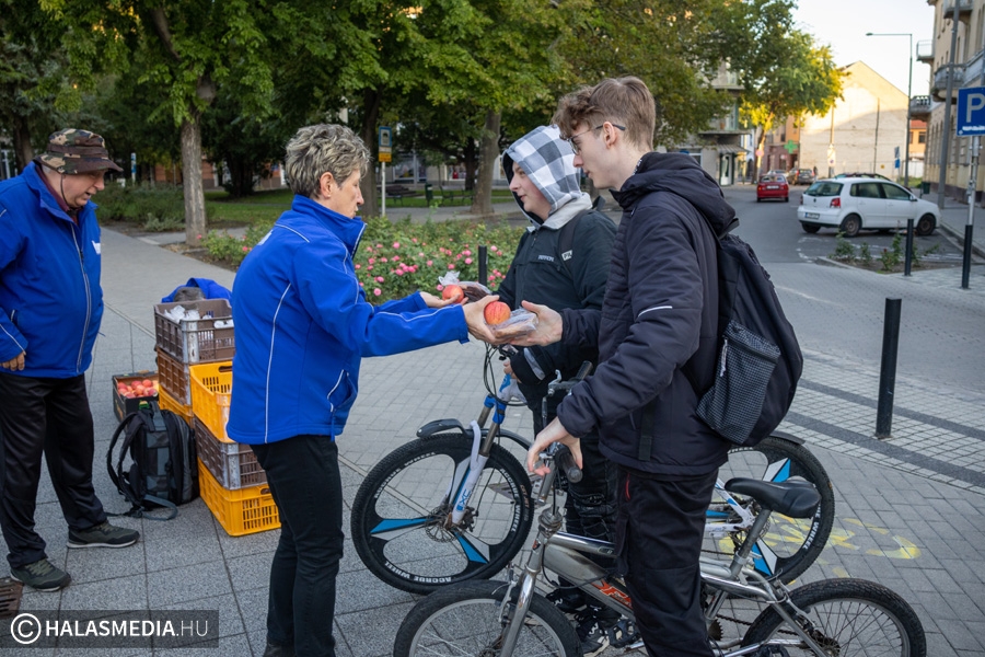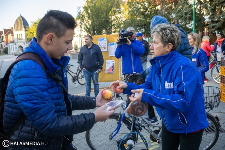 A Halasi Média és Kultúra Kft. évek óta megszervezi a Bringás reggeli fantázianevű programot, az Európai Mobilitási Hét keretében. Azok, akik ma reggel kerékpárral haladtak át a Bethlen Gábor téren, egy kakaós csigát és egy ízletes almát kaptak jutalmul.