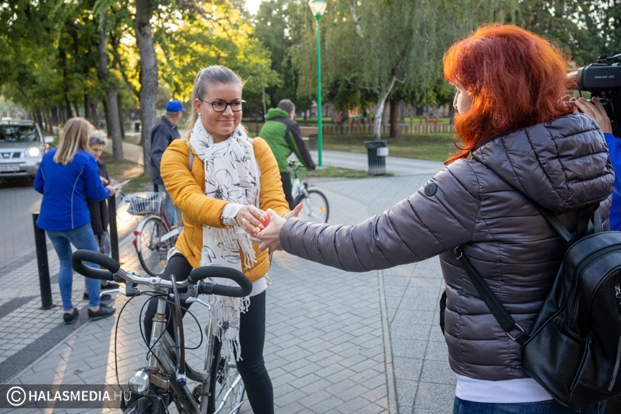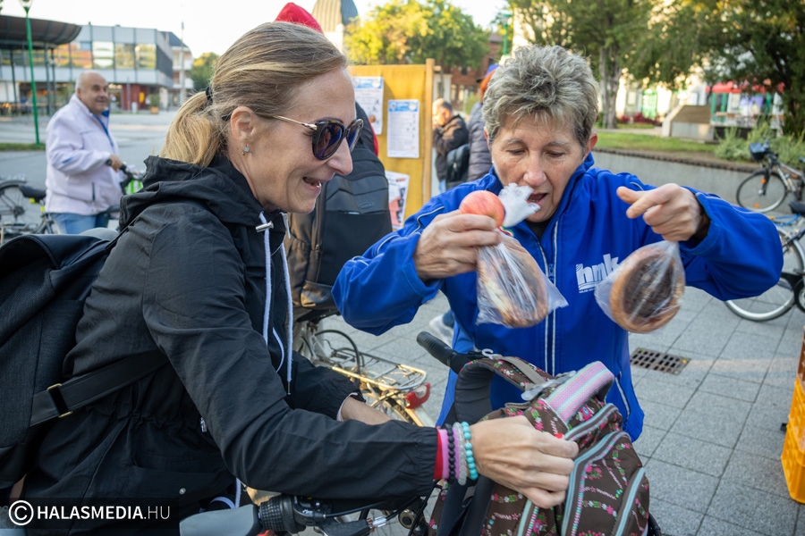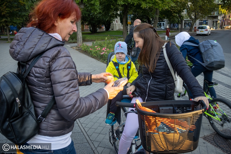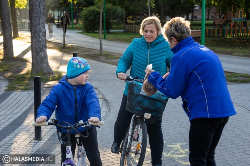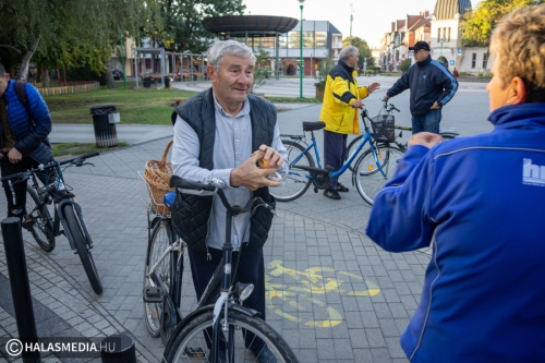 A lelkes szervezőcsapat reggel hét órától várta a kerekezőket Halas főterén. A legtöbben örömmel fogadták a kezdeményezést.