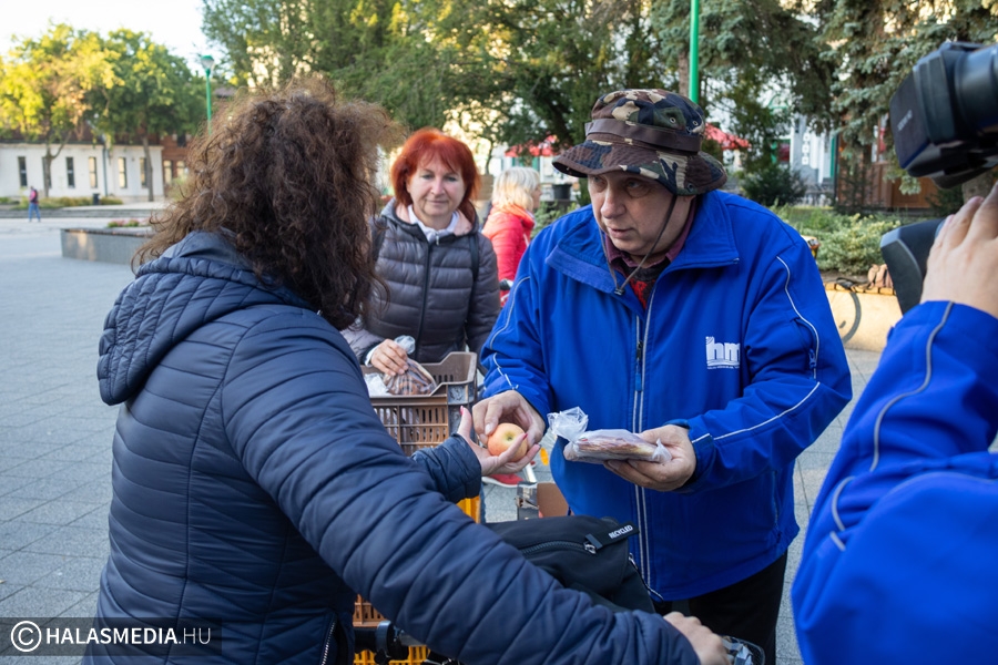 Kiskunhalas város polgármestere is ott volt a mai rendezvényen. Többeknek személyesen ő adta át a reggeli finomságokat.