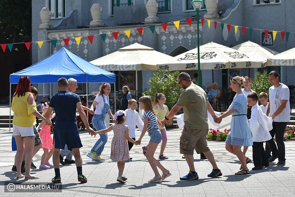 Együtt játszottak, „kalandoztak” a családok Kiskunhalas főterén, a városi gyermeknapon. A színpadon zenés, táncos produkciók váltották egymást. A gyerekeket helyi civilek, egyesületek különböző feladatokkal várták. A nagy hőségben pedig jól esett a jutalom fagylalt.