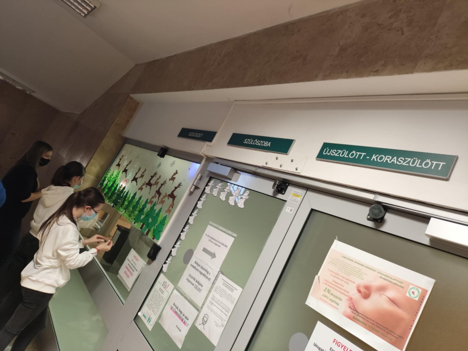 A papírdíszek gyártása heteken át tartott, majd december 4-én 12 jelenlévő tanuló abban is segíthetett, hogy a munkadarabok a méltó helyükre kerülhessenek a kiskunhalasi Semmelweis Kórház gyermekrészlegein, szülészetén és PIC osztályán. A jelentkezők nagy része tudatosan készül az egészségügyi pályára, ezért nem volt kérdés számukra, hogy itt a helyük. Megkapó volt tapasztalni továbbá, ahogyan egyik önkéntesünk közvetlen családtagja egyszer csak talpig fehérben lépett oda csapatunkhoz, hogy gratuláljon a kezdeményezéshez.