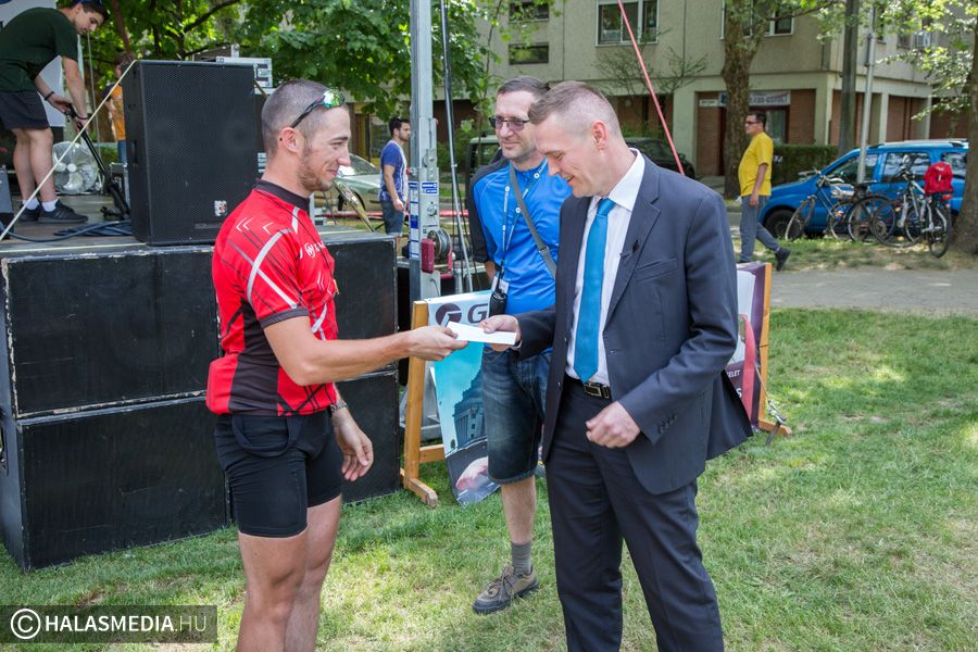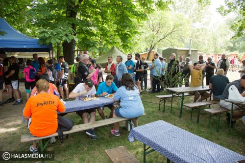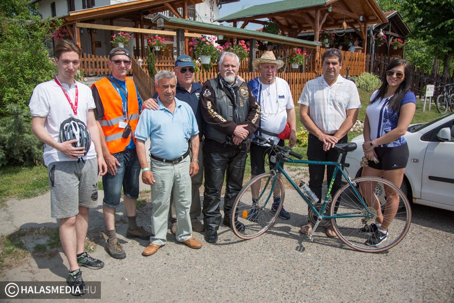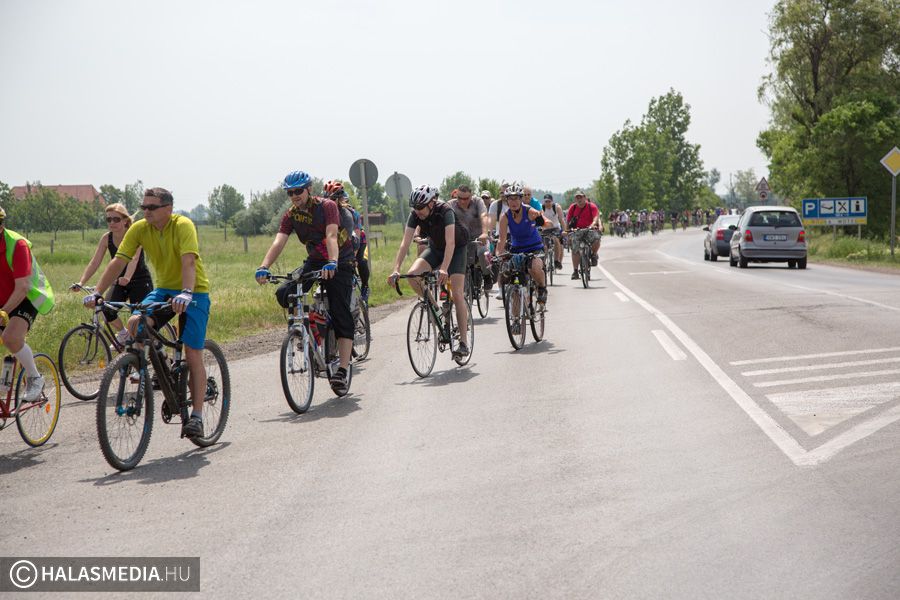 A több száz résztvevős csapat dél környékén érkezett meg a halasi célállomásra, Juhász György önkormányzati képviselő vezetésével. Ezt követően egy ünnepélyes díjátadó következett. Király Gábor, a Halasi Bringabarát Klub vezetője kimondottan erre az alkalomra készített halasi csipkéket adott át Péter Lászlónak, a szabadkai túra szervezőjének és Bicskei Gábornak, a magyarkanizsai klub képviselőjének.