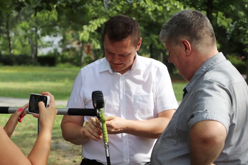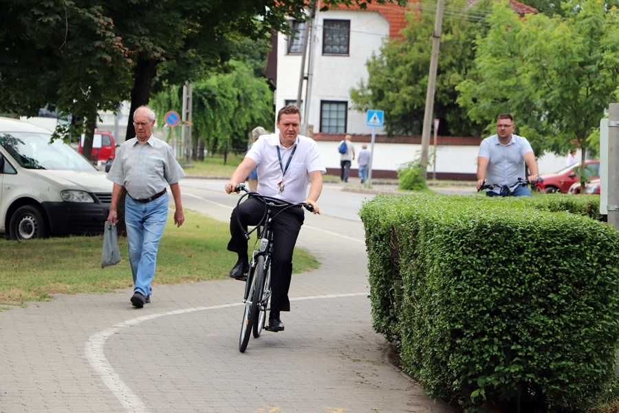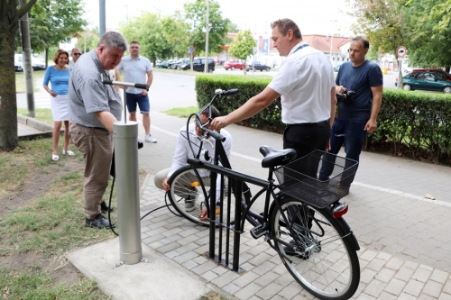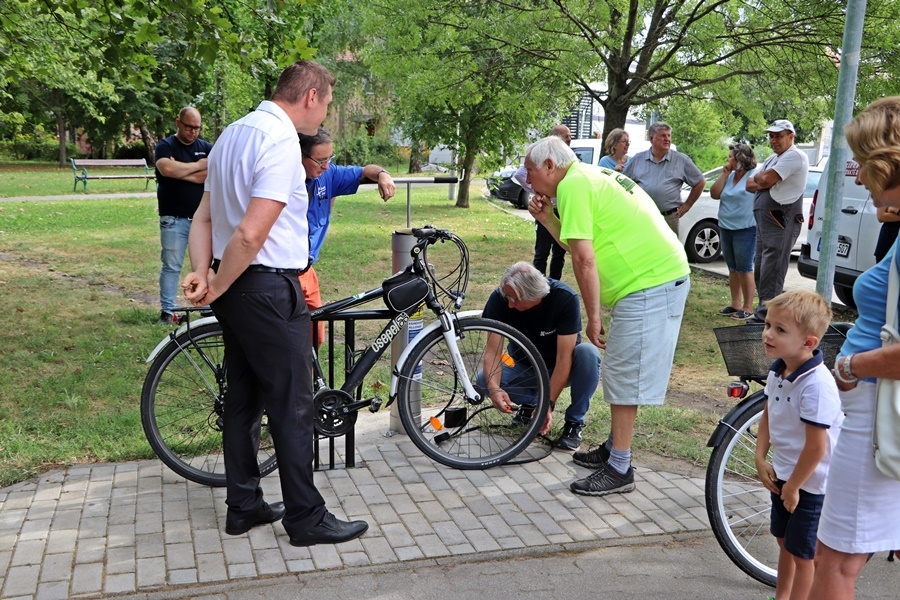Az átadó ünnepségen Fülöp Róbert polgármester mondott köszönetet a Ganzair Kft. ügyvezetőjének, Gidai Olivérnek. A városvezető szerint dinamikusan fejlődik a kerékpárút hálózat. Jó látni, hogy ilyen sokan használják a kerékpárjukat, tehermentesítve ezzel a városközpontot a gépjárműforgalomtól. Régi terv valósulhatott meg most, a Ganzair felajánlásának köszönhetően. A városvezető elmondta, bízik benne, hogy a kompresszoros töltőállomás sok embernek nyújt majd segítséget. Főleg úgy, hogy a közeli piacra is sokan kerékpárral érkeznek. A polgármester arról is tájékoztatta a jelenlévőket, hogy hamarosan egy kerékpáros szervizpont is létesül a városközpontban, ez a Rotary Club adománya lesz majd.