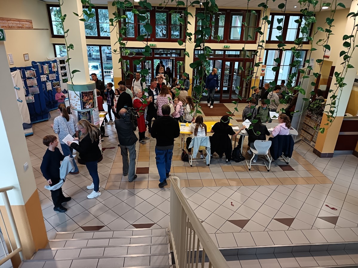 A gimnáziumban idén minden eddiginél több helyszínen várták a látogatókat és igen széles volt a kínálat, hiszen a kémia, a fizika és a biológiai mellett az angol, német nyelvterületek és az Erasmus program is bemutatkozott, sőt még a testnevelés is.