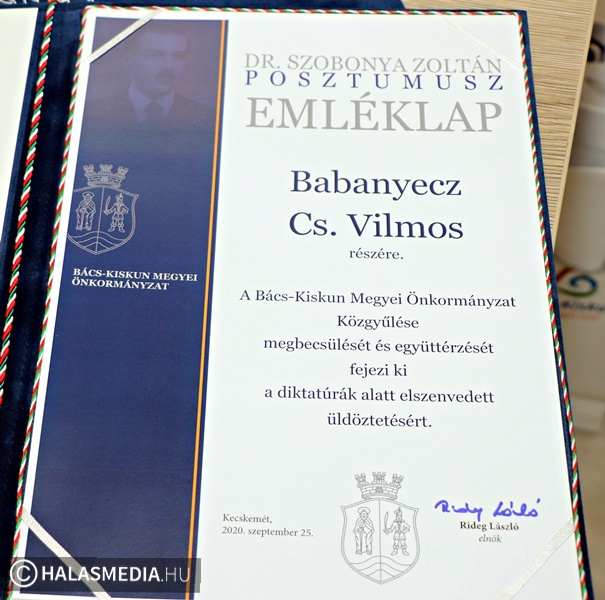 A Bács-Kiskun Megyei Közgyűlés szeptember 29-ét, Dr. Szobonya Zoltán mártírhalálának napját 2016-ban minősítette megyei emléknappá. Azóta ez a nap az 1945-1961 közötti időszak hőseinek és áldozatainak állít méltó emléket, a rendszert megszenvedő tanuk és családjuk előtti tisztelgés, együttérzés emléknapjaként. Pénteken már 5. alkalommal rendezték meg a megyei emléknapot, amelyet idén az előző évekhez eltérően – a pandémiára való tekintettel – a világháló segítségével követhettek nyomon az érintettek. Az ünnepi beszédek ezúttal a Megyeháza elnöki irodájában hangoztak el, amit a kitüntettetek online követhettek figyelemmel. Az oklevelek átadására a településeken került sor a helyi polgármesterek segítségével. Kiskunhalason, a városháza dísztermében volt a rendezvény.