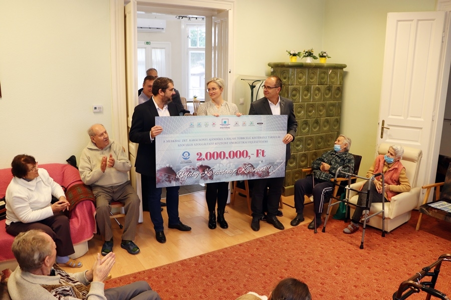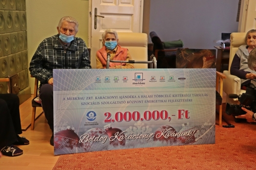 Az átadón Knáb János elmondta, a Merkbau három esztendeje döntötte el hogy a szokásos, partnereknek szánt karácsonyi tárgyi ajándék helyett jótékony célokra fordítja ezt az összeget, így a halasi kórház korábbi támogatása mellett a Merkbau Oktatási Alapítvány után most az Idősek Klubja lett a megajándékozott.