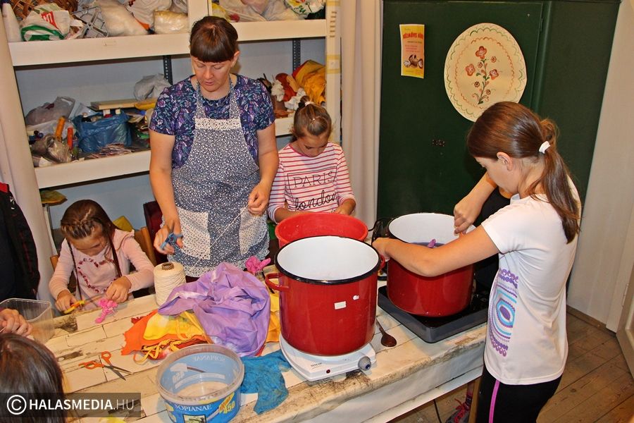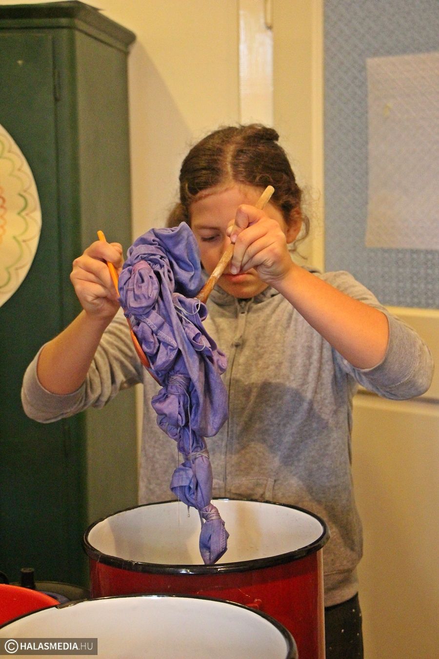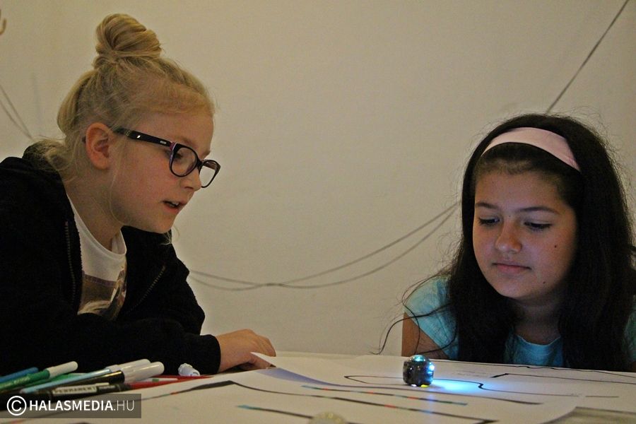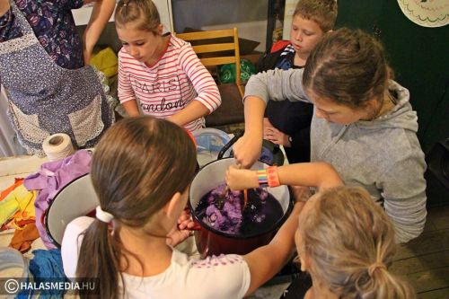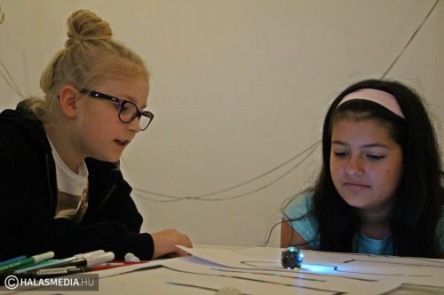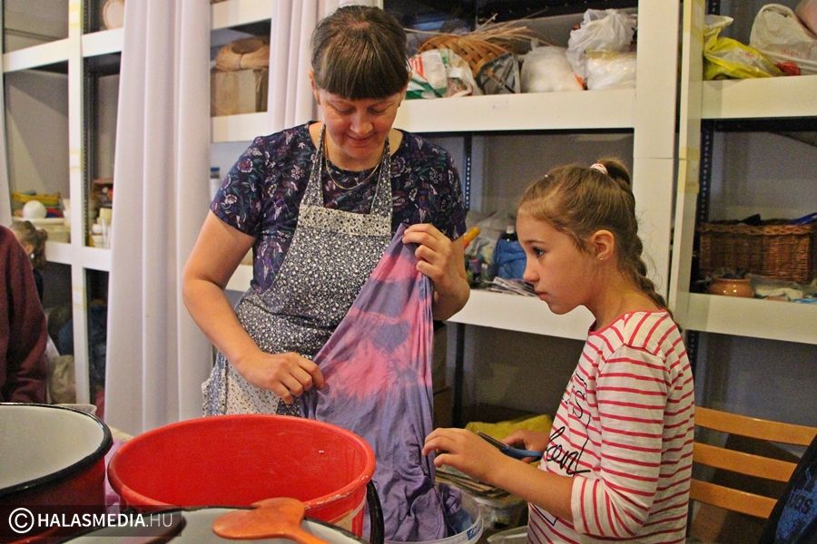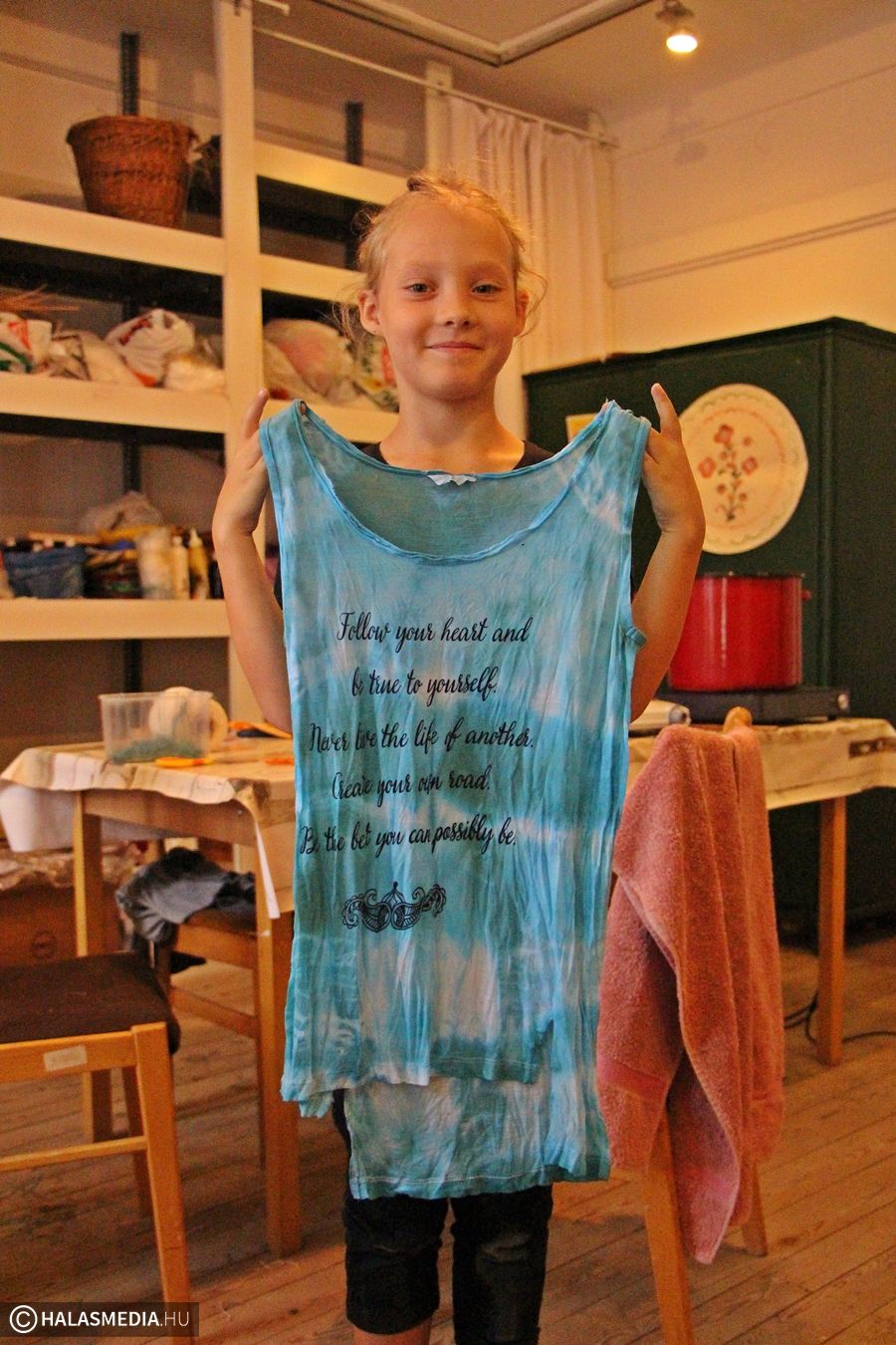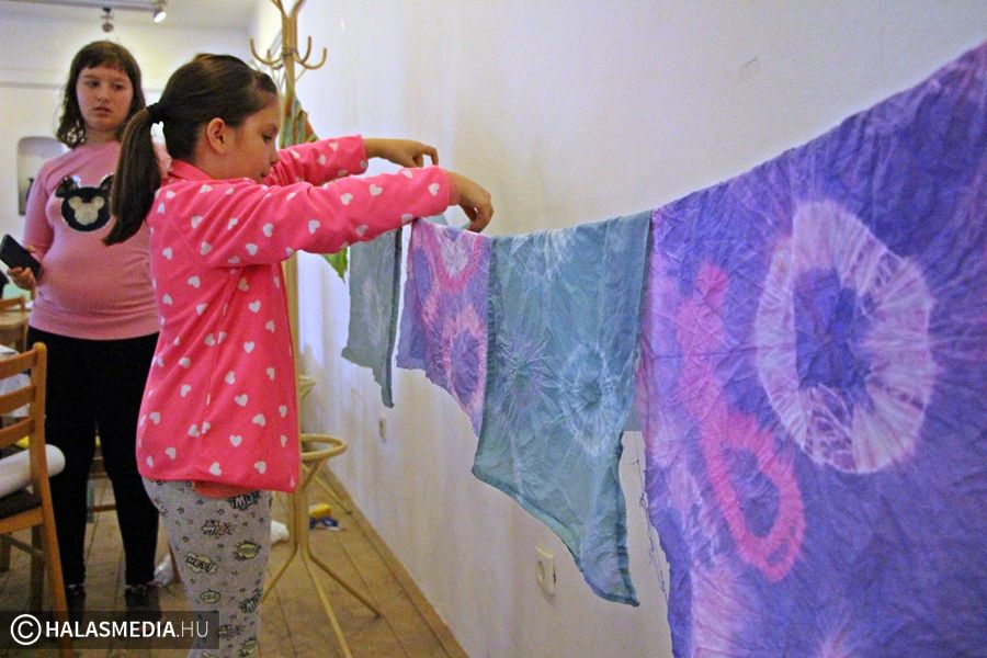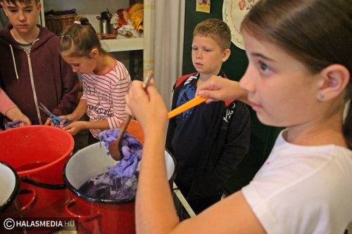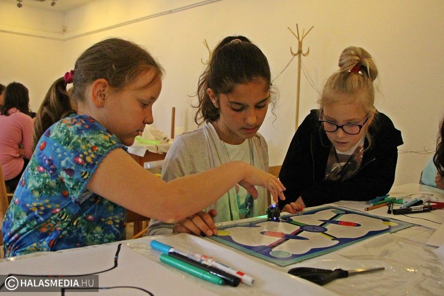 - Még soha nem batikoltam. Nagyon érdekes ez a technológia. Először szorosan meg kell kötözni zsineggel az összegyűrt ruhadarabot. Bele kell mártani a forrásban lévő, befestékezett vízbe. Nagyjából tíz perc után kivehetjük, lecsepegtetjük, és leszedjük a kötözéseket. Ahol madzag volt, ott fehér marad a ruha, a többi részén pedig olyan színű, amilyen a festék volt a vízben. A robotok is nagyon tetszettek, készítettünk különféle akadályokat, amiket a kis gép kikerült. Villog, csipog és nagyon okos – mesélte élményeit Fazekas Panna Lili, a Fazekas-iskola diákja.