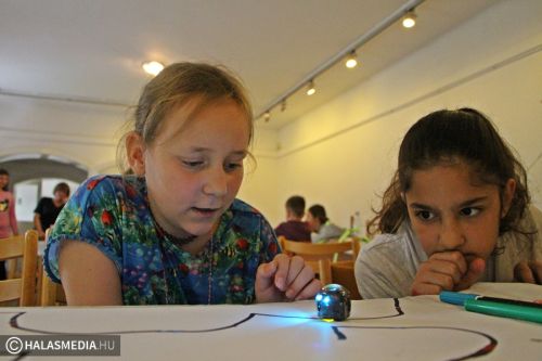- Ezekben a napokban országszerte tematikus táborok zajlanak, ehhez csatlakoztunk mi is. Kaptunk egy témasablont, de ez csak ajánlott munkamenetet kínál, természetesen el lehetett tőle térni. Mi a kortárs mesék feldolgozását választottuk a művészet témakörben. Egy csoport most éppen a batikolás folyamatát tanulja, mi pedig programozható robotokkal végzünk el különböző feladatokat. Bátran mondhatom, hogy a mai, modern gyerekek körében ez a legkedveltebb programlehetőség a mostani táborunkban. Színes filctollakkal pályát rajzolhatnak a kis robotoknak, amik aztán színjelzéstől függően különféle feladatokat hajtanak végre – tudtuk meg Kovács Ibolyától, az Alapfokú Művészeti Iskola igazgatóhelyettesétől.