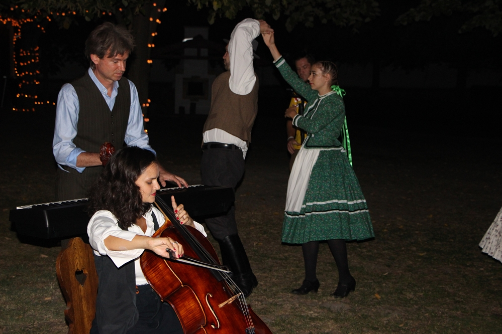 A csellóművésznő először látogatott városunkba. Jókedvűen készült a forgatásra Kiskunhalason, a Végh-kúria udvarán.