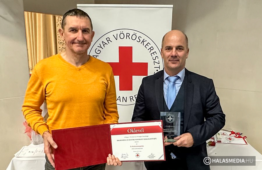 November 17-én, Kecskeméten, a Kormányhivatal dísztermében a Magyar Vöröskereszt Bács-Kiskun Vármegyei Szervezetének ünnepi díjátadó rendezvényére került sor, ahol többek között a rendszeres és nagyszámban véradó személyeket ismerték el. Az ünnepségen a véradást segítők is díjat kaptak, így a 2022-es év médiatámogatójaként emléktárgyat és oklevelet kapott a Halasi Média és Kultúra Nonprofit Kft., amelynek jogutódja, a Halasi Városmenedzser Nonprofit Kft. képviseletében, Vincze Bálint vette át az elismerést. (dr. Tóth Gábor, dr. Havasi Sándor és a díjátvevő Vincze Bálint)
