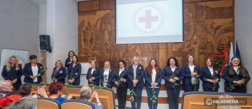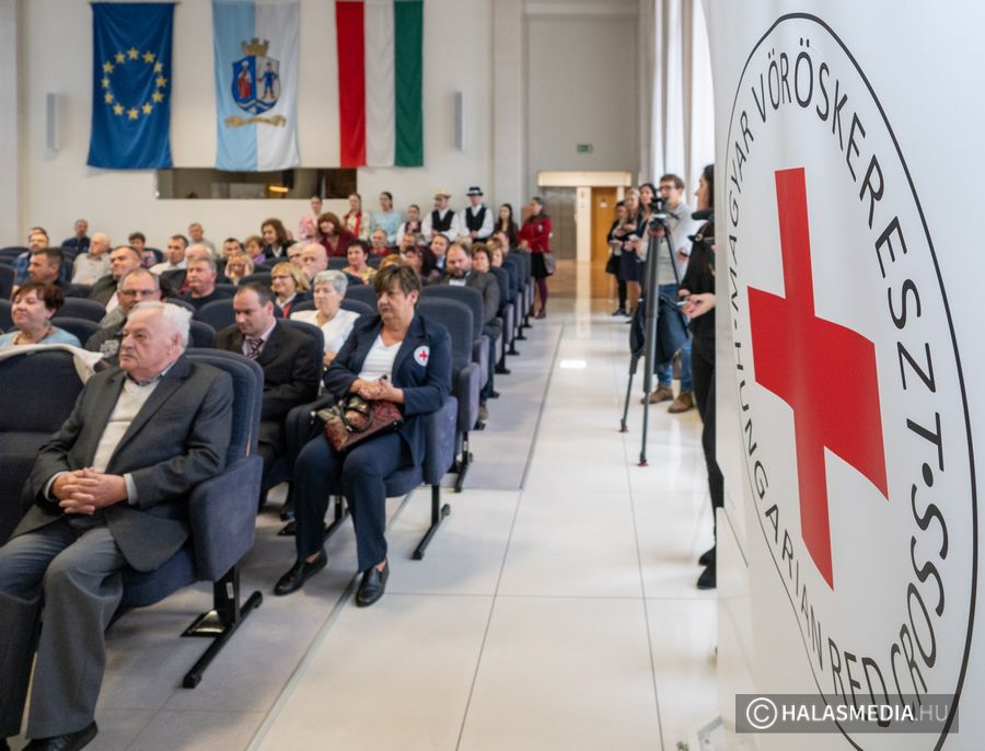Lipóthné Komjáti Andrea, a Magyar Vöröskereszt Bács-Kiskun Vármegyei Szervezetének igazgatója köszöntötte a jelenlévőket pénteken délelőtt a Kecskeméten, Vármegyeházában tartott díjátadó eseményen. A kormányhivatal dísztermében az elnökségben dr. Tóth Gábor, a Magyar Vöröskereszt Bács-Kiskun Vármegyei Szervezetének elnöke, dr. Havasi Sándor, a Bács-Kiskun Vármegyei Kormányhivatal igazgatója foglaltak helyet. Velük együtt külön köszöntötték Dr. Balázs Margitot, a Kecskeméti Területi Vérellátó főorvos asszonyát, Kanik Erika vezető asszisztenst és Dr. Schulcz József főorvost a Magyar Vöröskereszt országos vezetőség tagját.