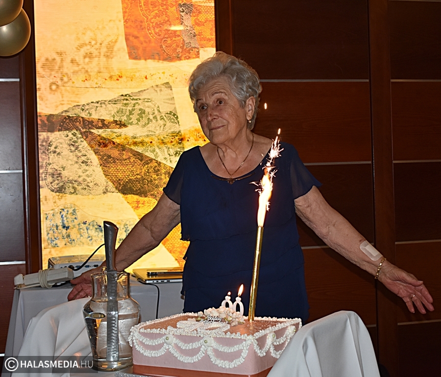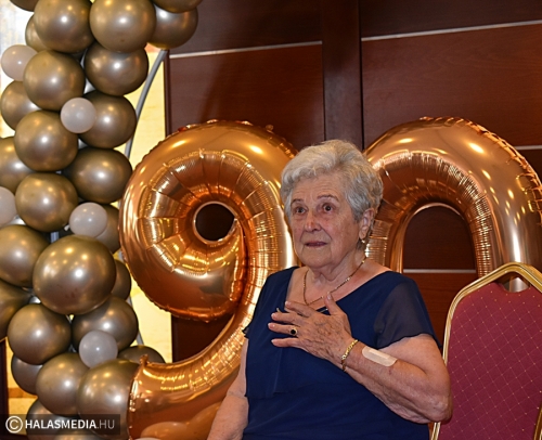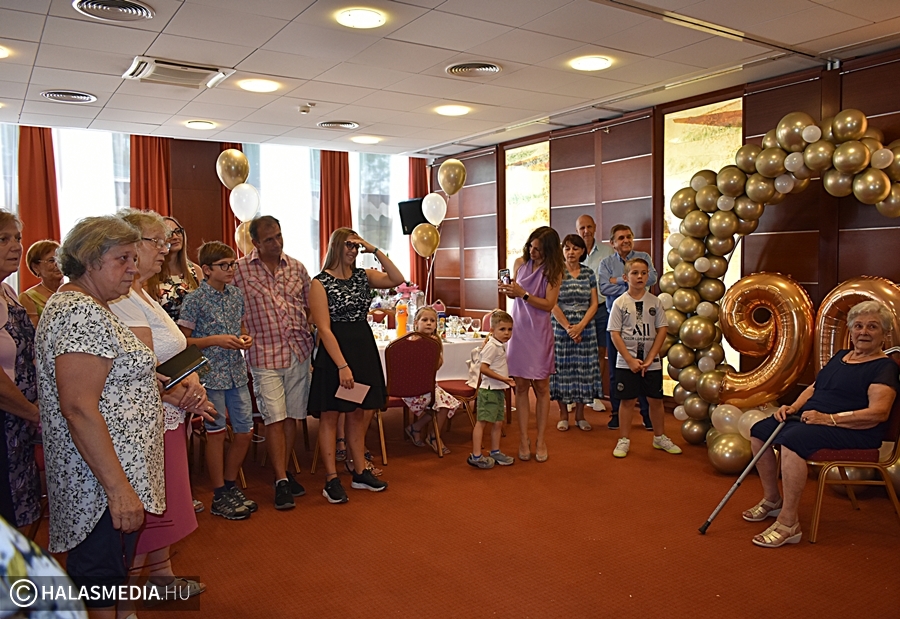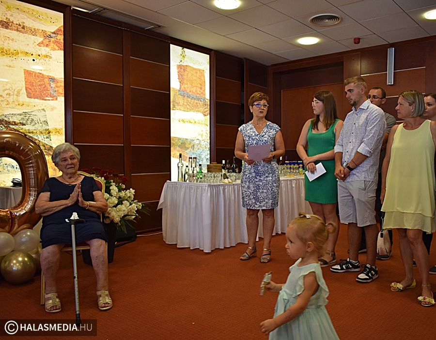 Nekem a családom a mindenem, szeretem őket és örülök, hogy így 90 éves koromban is együtt lehetünk – mondta a születésnapja alkalmából tartott köszöntésen a halasi Rokolya Imréné. Az ünnepeltnek két lánya, négy unokája, hét dédunokája van. A kicsik ott jártunkkor is szeretettel bújtak hozzá és azt mondták ő a legjobb dédmama.